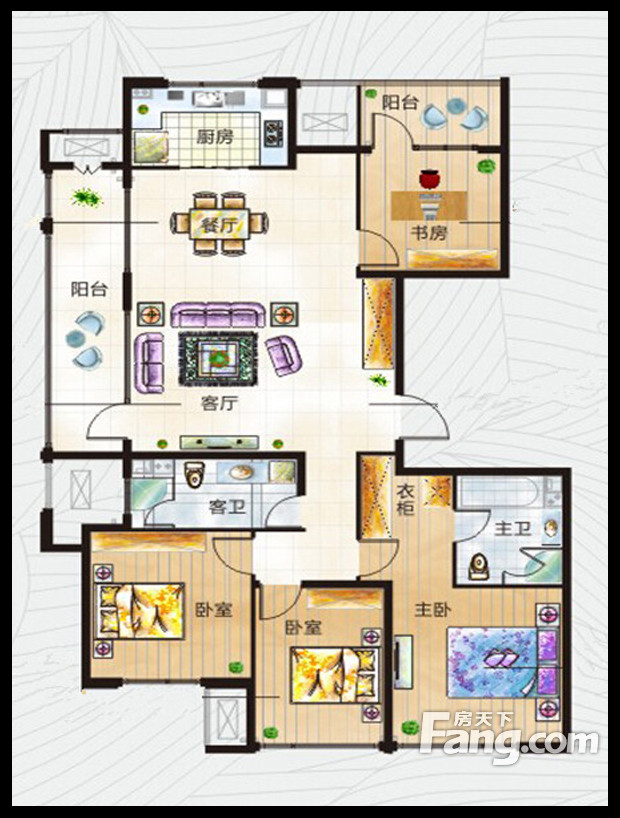 • 龍海林溪戶型圖一期B3戶型 3室 面積:129.25㎡