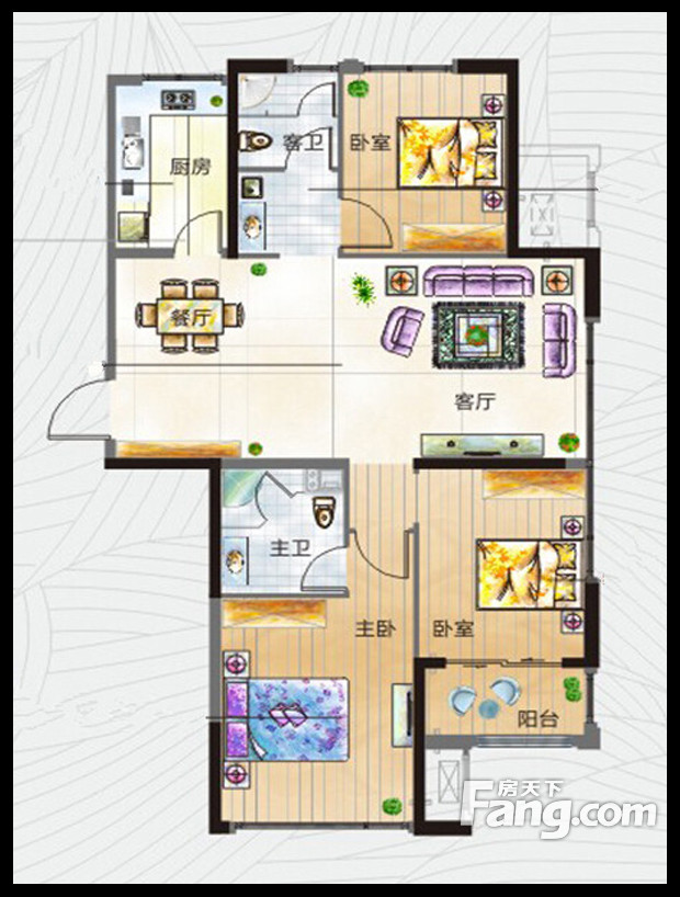• 龍海林溪戶型圖一期B1戶型 3室 面積:126.40㎡