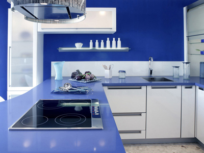 其實白色的吸塑櫥柜與藍色的石英石臺面,結合得相當美。