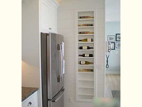 小小櫥柜的功能還能加大再加大,再旁邊加長厘米長的空間,就能延伸出一道小小的藏酒區域,這樣一個既節約空間越幫助收納的小設計,怎么能不愛?!
