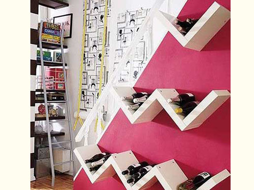 繼續利用墻壁空間,擱架一直是幫助墻壁實現收納功能的好助手,那針對于酒架,當然需要特殊造型的擱架,波浪形酒架則能很好的將美酒固定在架子上,不用擔心滾下來。