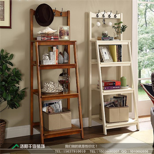 客廳里總有那么多零零總總的雜物沒地方放,茶幾抽屜再多也收納不下。在合適的地方放一個落地式的多層實木置物架,它像梯子一樣很有層次感,方便將物品分門別類地擺放展示。在上面養一些小型的綠植盆栽也是不錯的選擇。