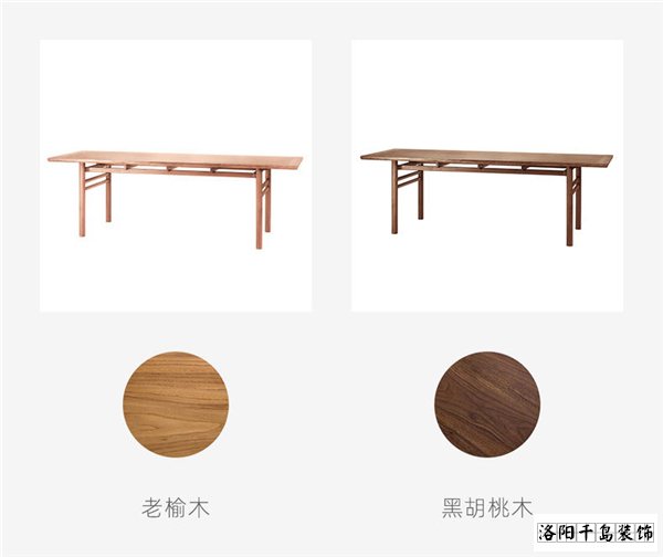 璞木的這款書案,有黑胡桃木和老榆木兩種可選,黑胡桃木不易變形,老榆木韌性極佳,都是做實木家具的優質選擇。并且,相較于顯老氣的傳統紅棕色,黑胡桃木和老榆木的顏色也更符合如今的審美,在兼具質感的同時,色彩也更有利于整體空間的搭配。