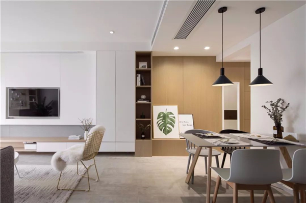 4、拼接:木飾面可與其它材質搭配拼接。比如木飾面與石材搭配,木飾面與乳膠漆搭配,木飾面與木線條搭配等,除此之外,它還可做半墻設計等等。