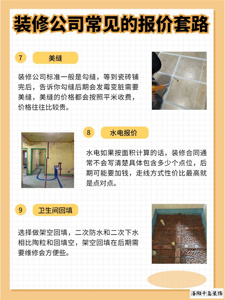 一、水電施工,用到的水管電線都給你用的是品牌里面最差的,水電施工的時候還會去繞線施工,開始報價的時候水電是5000,做完之后都要加你個大幾千。