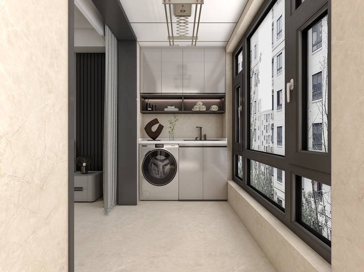 第五,陽臺的一側做儲物柜,把你換季的鞋子衣服搞里頭,另一側做一個帶搓衣板的洗手池,夏天的小衣服手搓手洗很方便,提醒一下吊柜做到頂,這樣空間利用不浪費。