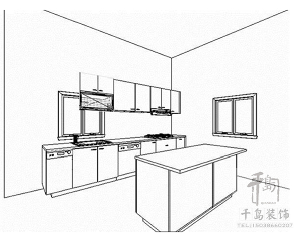 中島型廚房適合普遍家庭,其可以將廚房面積利用到大化程度,既有時尚的設計感,又不缺乏實用性,能夠滿足制作各種料理的需要。中島型廚房的面積應在16.5平方米以上,一般常見島型廚房的設計是在L字型廚房中加裝一個便餐臺或料理臺面,以便于同時多人使用。其構造為廚具工作臺,周圍不與任何廚具或壁面連接,為達到室內美觀,盡量與其他墻面距離保持在105公分左右,如此不僅美觀而且方便人流走動,不會擁擠。