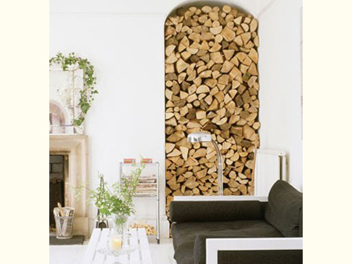 只要在凹面上稍加修飾一下,也能成為一個很好的儲藏空間。在壁爐旁邊的話,可以把柴都堆砌到這個凹面里,木材自然形成的有序堆疊又形成了一塊裝飾墻,復古而歐式。