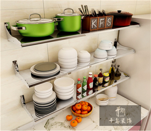 304鋼材防腐防水,底部是一整塊的設計使置物更穩,可以根據廚房空間大小選擇單層或多層掛置來打造干凈明亮的廚房環境。