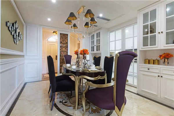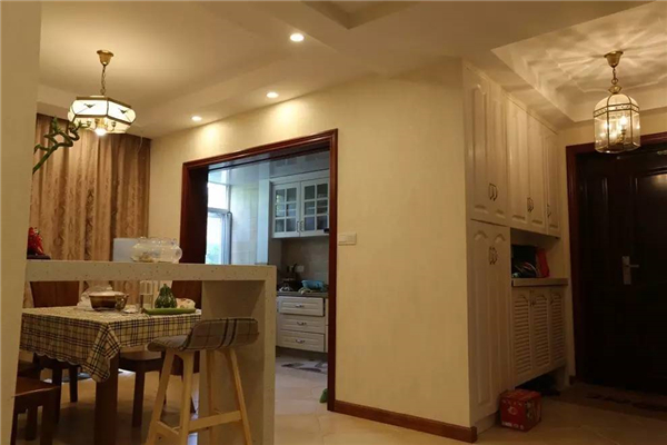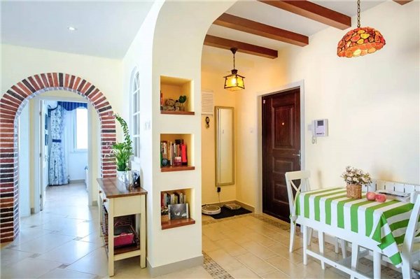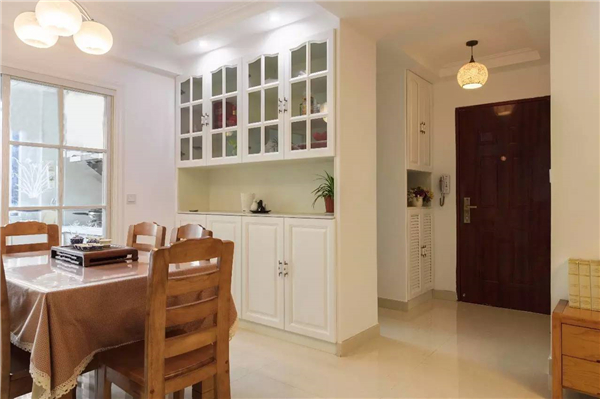 如果餐廳比較長(zhǎng)的,可以裝一道屏風(fēng),避免入戶(hù)門(mén)直對(duì)餐廳;同時(shí)建議可以采用鞋柜隔斷,讓沒(méi)玄關(guān)的戶(hù)型隔出一個(gè)玄關(guān)空間的同時(shí)又能增加收納功能。