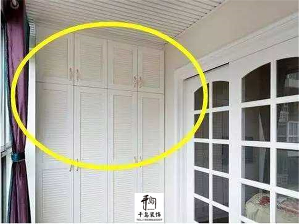 想要把陽臺利用起來這個想法是不錯,但是裝柜子實在是不合適,因為陽臺是屬于比較潮濕的地方,你若是放這種柜子,木質柜子容易壞不說,里面放的東西可能也不保了。實在是不壞算呀!不如擺個大吊椅什么的,坐在上面看看外面的風景,這樣多好!何必浪費錢去裝個柜子呢!哎!